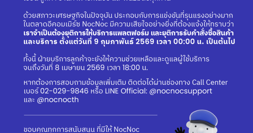 NocNoc ประกาศยุติการให้บริการแพลตฟอร์ม