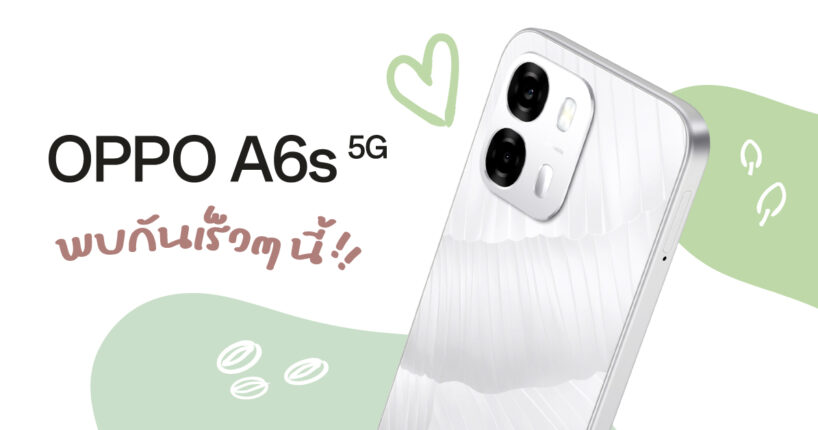 เตรียมพบกับ OPPO A6s 5G สมาร์ตโฟนดีไซน์สวย จับถนัดมือ พร้อมกับกล้องคมชัดพิเศษ ถ่ายสนุก ใช้งานสมูทลื่นไหล เร็วๆ นี้! มีนาคม 24, 2026 HereNat 0 Latest News, Mobile, oppo sponsor contents, เตรียมพบกับ OPP...