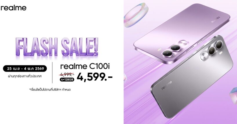 งบ 5,000 มีทอน! realme C100i เปิดราคาไทยเพียง 4,999.- พร้อมแบตยักษ์ 7,000mAh