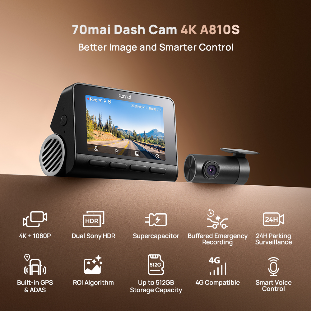 นอกเหนือจากการอัปเกรดด้านภาพและการเชื่อมต่อ A810S ความละเอียด 4K ยังได้รับการปรับปรุงในทุกรายละเอียดเพื่อมอบประสบการณ์ใช้งานที่ลื่นไหลยิ่งขึ้น รองรับ Wi-Fi 6 เพื่อการถ่ายโอนไฟล์ที่รวดเร็วและเสถียร เช่น ดาวน์โหลดวิดีโอขนาด 200MB ลงโทรศัพท์ได้ภายในไม่กี่วินาที พร้อมระบบสั่งงานด้วยเสียงที่ช่วยให้ผู้ขับขี่ควบคุมฟังก์ชันสำคัญได้โดยไม่ต้องละมือจากพวงมาลัยเพื่อความปลอดภัยสูงสุด ขณะเดียวกัน การใช้ซุปเปอร์คาปาซิเตอร์ยังช่วยเพิ่มความทนทานและความปลอดภัยแม้ในสภาพอากาศสุดขั้ว และยังรองรับการ์ด microSD สูงสุด 512GB เพื่อการบันทึกที่ยาวนานโดยไม่ต้องกังวลเรื่องพื้นที่จัดเก็บ