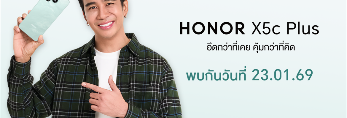 19 มกราคม 2569, กรุงเทพฯ – ออเนอร์ (HONOR) ผู้ให้บริการอุปกรณ์อัจฉริยะชั้นนำระดับโลก เตรียมสร้างสีสันและความคึกคักให้ตลาดสมาร์ตโฟนระดับเริ่มต้นอีกครั้ง ด้วยการเปิดตัว “HONOR X5c Plus” สมาร์ตโฟนรุ่นใหม่ ราคาคุ้มค่าที่สุดในตระกูล X Series ที่ออกแบบมาเพื่อตอบโจทย์ผู้ใช้งานยุคใหม่อย่างรอบด้าน ภายใต้คอนเซ็ปต์ ‘อึดกว่าที่เคย คุ้มกว่าที่คิด’ ครอบคลุมทุกการใช้งานและทุกไลฟ์สไตล์ในชีวิตประจำวัน