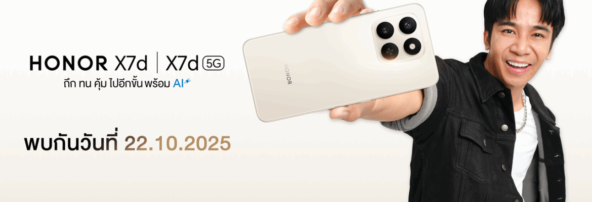 14 ตุลาคม 2568, กรุงเทพฯ – ออเนอร์ (HONOR) แบรนด์เทคโนโลยีชั้นนำระดับโลก เตรียมเปิดตัว HONOR X7d Series สมาร์ตโฟนรุ่นใหม่ล่าสุดที่ยกระดับมาตรฐานของสมาร์ตโฟนราคาประหยัด ด้วยดีไซน์แข็งแกร่ง ทนทานเหนือชั้น และฟีเจอร์ AI อัจฉริยะ ที่เข้ามาช่วยเพิ่มความสะดวกในทุกการใช้งาน ผสานประสิทธิภาพและความคุ้มค่าไว้อย่างลงตัว เหมาะสำหรับผู้ใช้งานยุคใหม่และสายลุยที่มองหาสมาร์ตโฟนที่ทั้งอึด ถึก ทน และตอบโจทย์ได้ครบทุกด้านในราคาที่เข้าถึงได้