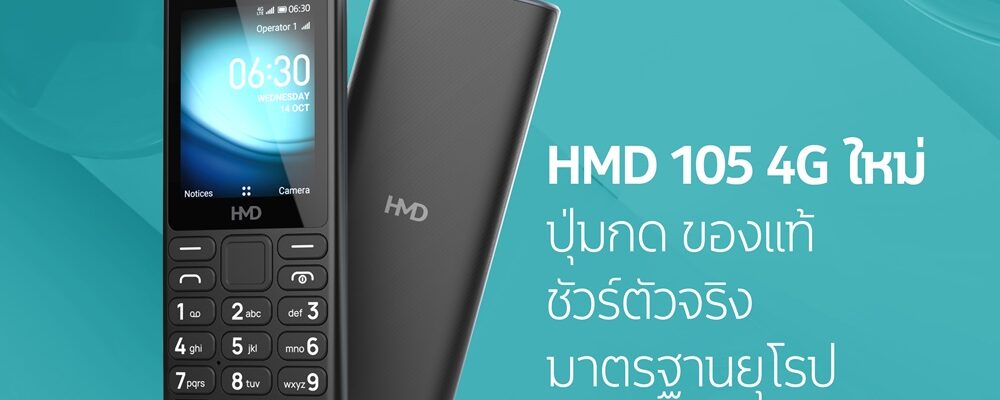 HMD เปิดตัวฟีเจอร์โฟนรุ่นแรก HMD 105 4G ภายใต้แบรนด์ HMD ทนทาน แบตอึด มาตรฐานยุโรป ในราคาเข้าถึงได้เพียง 990 บาท