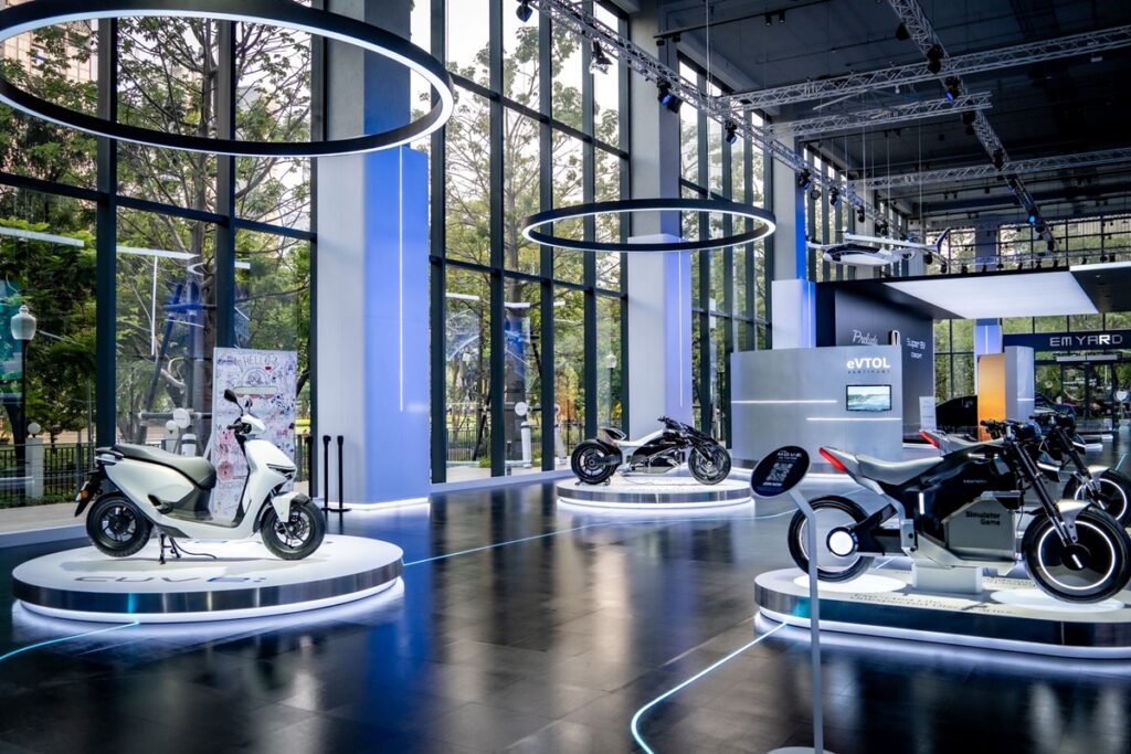 ภายในโซน Future Ride ผู้เข้าชมยังสามารถสัมผัสกับโมเดลจักรยานยนต์ไฟฟ้า New Honda CUV e: รถจักรยานยนต์พลังงานไฟฟ้ารุ่นที่ 2 ของฮอนด้า ที่มาพร้อมกับแบตเตอรี่ Honda Mobile Power Pack e: ซึ่งเป็นแบตเตอรี่แบบสับเปลี่ยนได้แบบรวดเร็วภายใน 1 นาที ออกแบบผ่านคอนเซปต์ ‘Smart Ride, Future Ready’ โดดเด่นด้วยดีไซน์ล้ำสมัยรอบคัน มาพร้อมกับไฟ