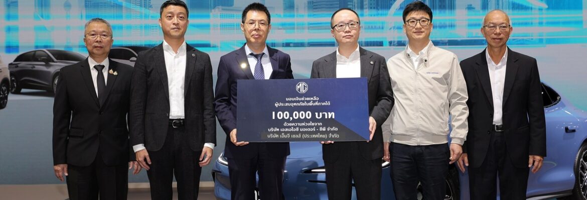 กรุงเทพฯ – 8 ธันวาคม 2568 – บริษัท เอสเอไอซี มอเตอร์ – ซีพี จำกัด และ บริษัท เอ็มจี เซลส์ (ประเทศไทย) จำกัด ผู้ผลิตและผู้จำหน่ายรถยนต์เอ็มจีในประเทศไทย เดินหน้าสนับสนุนการช่วยเหลือสังคมตามแนวคิด “TOGETHER FOR BETTER THAILAND ส่งต่อความห่วงใยจากใจ สู่คนไทยทุกคน” มอบความช่วยเหลือไปยังพี่น้องชาวไทยผู้ประสบอุทกภัยในพื้นที่ภาคใต้ มุ่งฟื้นฟูขวัญและกำลังใจ พร้อมช่วยแบ่งเบาภาระค่าใช้จ่าย เพื่อให้สามารถยืนหยัดในการใช้ชีวิตได้หลังน้ำลด ครอบคลุมทั้งการช่วยเหลือด้านการซ่อมบำรุงรถ มอบส่วนลดอะไหล่ 30% ฟรีค่าแรงเปลี่ยนอะไหล่และซ่อมบำรุง พร้อมมอบเครื่องชาร์จรถอีวีใหม่ให้ฟรี สำหรับลูกค้าที่ได้รับผลกระทบ รวมทั้งสนับสนุนอาหารและน้ำดื่มสำหรับผู้ประสบภัย และมอบทุนช่วยเหลือให้กับพนักงานที่ประสบภัยในพื้นที่ นอกจากนี้ยังร่วมบริจาคเงินสนับสนุนภารกิจช่วยเหลือผู้ประสบภัยให้กับสภากาชาดไทย