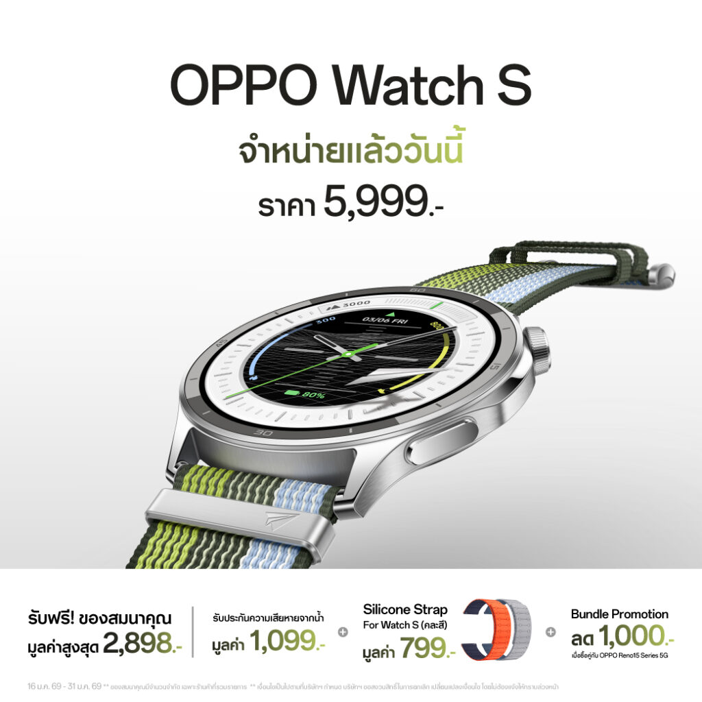 เมื่อซื้อ OPPO Watch S ในวันนี้ – 31 มกราคม 2569 จะได้รับสิทธิพิเศษมูลค่าสูงสุด 2,898 บาท ดังนี้