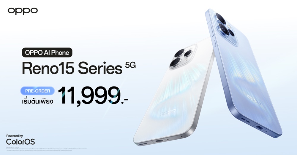 กรุงเทพฯ, 8 มกราคม 2569 – ออปโป้ ไทยแลนด์ ผู้นำตลาดสมาร์ตโฟน ตอกย้ำการเป็นผู้เชี่ยวชาญด้านการถ่ายภาพพอร์ตเทรต เปิดตัว “OPPO Reno15 Series 5G” อย่างเป็นทางการ สมาร์ตโฟนเพื่อนซี้ เทรนดี้ทุกช็อต ครบจบในเครื่องเดียวทั้งการถ่ายภาพและวิดีโอ สานต่อแนวคิด “The Portrait Expert” ยกระดับขีดจำกัดการถ่ายภาพพอร์ตเทรตไปอีกขั้น ชูไฮไลต์กล้องเซลฟี่มุมกว้างพิเศษความละเอียด 50MP มาพร้อมระยะใหม่ 0.6x กว้างที่สุดในอุตสาหกรรม ผสานกล้องพอร์ตเทรตซูมได้ 3.5x ถ่ายทอดภาพบุคคลให้มีมิติ ไวบ์ดี มีสไตล์และเอกลักษณ์ไม่ซ้ำใคร ยกเครื่องระบบปฏิบัติการใหม่ ColorOS 16 และผู้ช่วย AI อัจฉริยะส่วนตัว AI Mind Space รวมข้อมูลและความรู้ส่วนตัวในมือคุณ บนดีไซน์ฝาหลังเอฟเฟกต์แสงออโรร่าพลิ้วไหวสะท้อนการโลดแล่นของแสง โดยเปิดตัวพร้อมกัน 4 รุ่น ได้แก่ OPPO Reno15 F 5G, OPPO Reno15 5G, OPPO Reno15 Pro 5G และใหม่ล่าสุดกับ OPPO Reno15 Pro Max 5G ในราคาเริ่มต้น 11,999 บาท เสริมทัพอีโคซิสเต็มด้วย OPPO Watch S ในราคา 5,999 บาท และ OPPO Pad 5 ในราคาเริ่มต้น 13,999 บาท สัมผัสได้แล้ววันนี้ ณ OPPO Brand Shop ทุกสาขา และตัวแทนจำหน่ายทั่วประเทศ