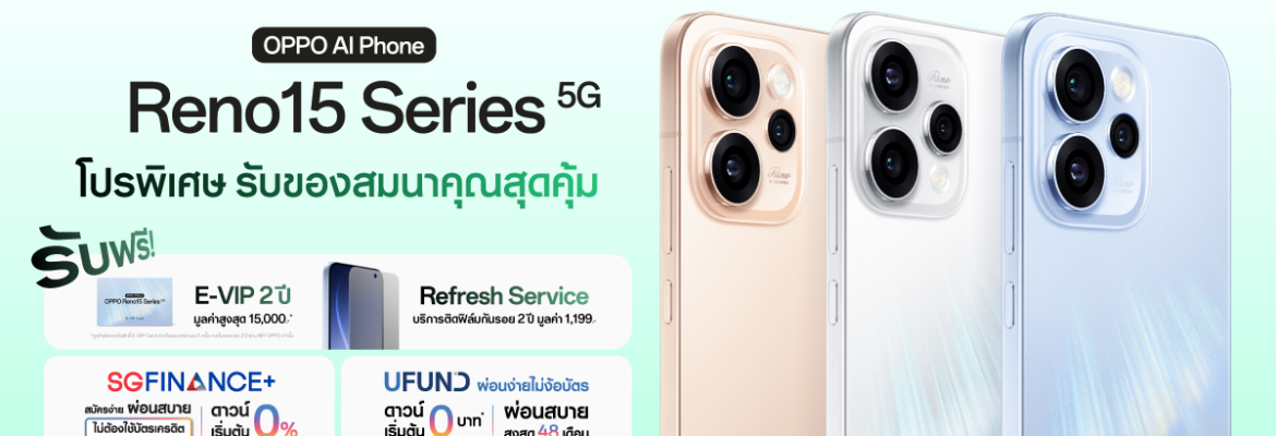 ดีลสุดคุ้มห้ามพลาด! กับ OPPO Reno15 Series 5Gโปรพิเศษ รับไปเลยของสมนาคุณสุดคุ้ม!