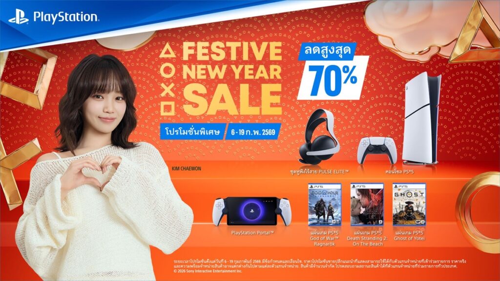 เตรียมพบกับโปรโมชันพิเศษต้อนรับปีใหม่ PlayStation Festive New Year Sale 2026 ซึ่งจะจัดขึ้นตั้งแต่วันที่ 6 กุมภาพันธ์ ถึง 19 กุมภาพันธ์ 2569 (หรือจนกว่าสินค้าจะหมด) ณ ร้านค้า หรือ ตัวแทนจำหน่ายที่ร่วมรายการ พร้อมเอาใจคอเกมด้วยส่วนลดคอนโซล อุปกรณ์เสริม ประกอบด้วย