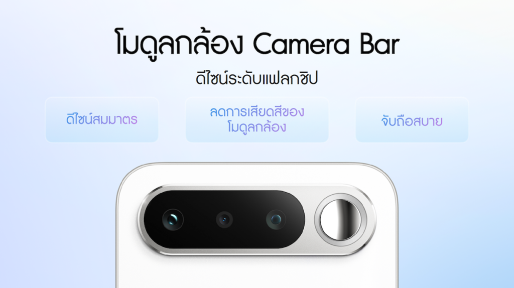 นอกจากในแง่คุณภาพของภาพถ่าย ดีไซน์ Camera Bar แบบแนวนอนยังช่วยกระจายน้ำหนักตัวเครื่องให้สมดุลยิ่งขึ้น วางบนโต๊ะได้อย่างมั่นคงไม่มีกระดก และเมื่อจับถือแนวนอน ไม่ว่าจะเล่นเกมหรือดูซีรีส์ ก็จับได้ถนัดมือ ถือได้อย่างมั่นคง และไม่รู้สึกเมื่อยเมื่อใช้นาน ๆ ตอบโจทย์คนที่ใช้งานมือถือหนัก ๆ ตลอดวันได้เป็นอย่างดี