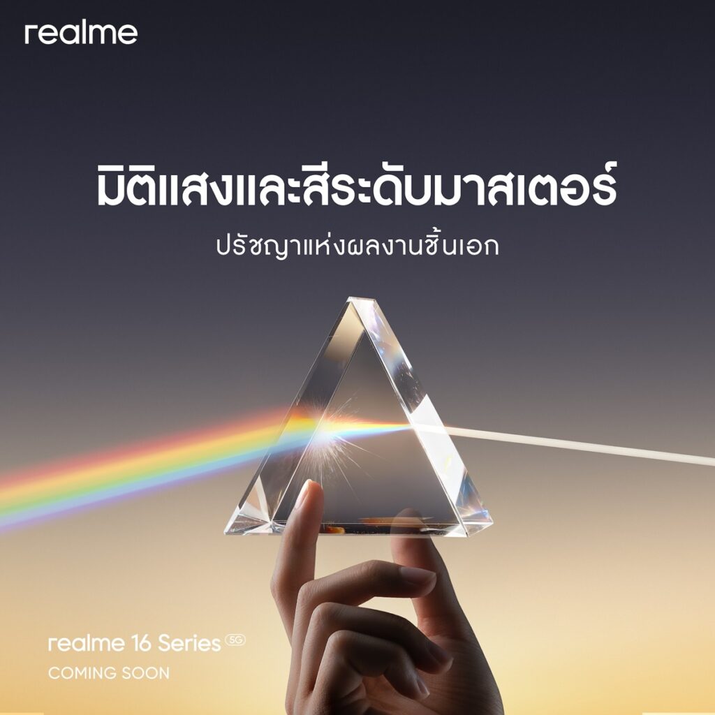 กรุงเทพฯ 4 มีนาคม 2569 – realme (เรียลมี) แบรนด์สมาร์ตโฟนเพื่อคนรุ่นใหม่ที่เติบโตเร็วที่สุดในโลก เดินหน้าสร้างแรงสั่นสะเทือนครั้งใหม่ให้วงการสมาร์ตโฟนด้วยการเปิดตัว 16 Pro 5G Series โดยนำเสนอเทคโนโลยีภาพ LumaColor ครั้งแรกของอุตสาหกรรม พร้อมยกระดับระบบกล้องสู่มาตรฐานเรือธงเต็มขั้น ชูไฮไลต์  “Periscope 200MP หนึ่งเดียวในเซกเมนต์” ที่ออกแบบมาเพื่อดึงศักยภาพการถ่ายภาพบนสมาร์ตโฟนให้เข้าใกล้ระดับกล้องโปรมากขึ้น ทั้งในแง่ความละเอียด ความแม่นยำของสี และมิติภาพ โดยรุ่นนี้ถือเป็นสมาร์ตโฟนเพียงรุ่นเดียวในกลุ่มราคาที่มาพร้อมกล้อง 200MP และเลนส์ Telephoto ภายใต้ระบบ Full Focal 200MP ครอบคลุมการใช้งานครบทุกช่วงระยะ ตั้งแต่มุมมองมาตรฐานไปจนถึงซูมระยะไกล ตอบโจทย์สายพอร์ตเทรต ท่องเที่ยว และครีเอเตอร์ที่ต้องการไฟล์คุณภาพสูงในเครื่องเดียว