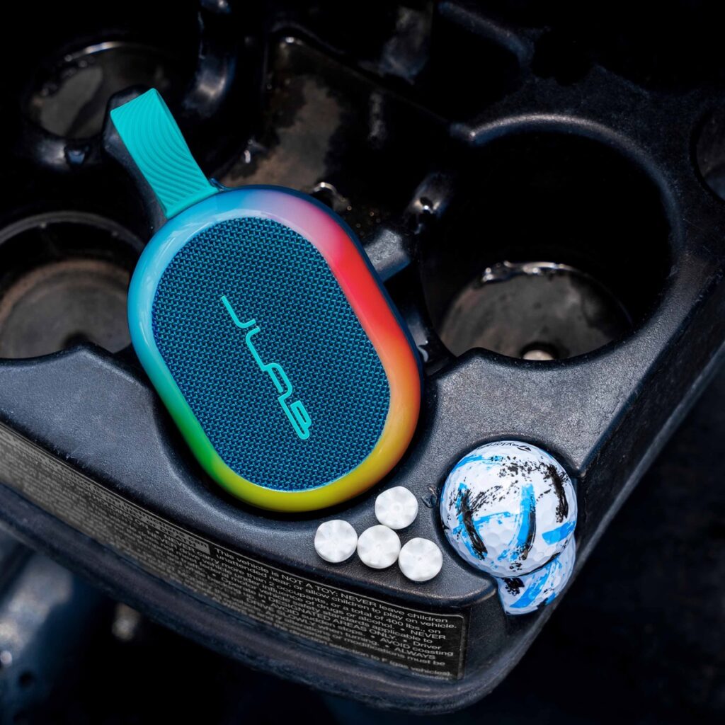JLab Pop Party ลำโพงบลูทูธพกพาขนาดเล็ก มาพร้อมดีไซน์ Ultra-Portable และสายคล้องแบบถอดได้ ให้คุณพกพาไปปาร์ตี้ได้ทุกที่ ทุกเวลา ติดตั้งไดร์เวอร์แบบฟูลเรนจ์ขนาด 2 นิ้ว และพาสซีฟวูฟเฟอร์ขนาด 2 นิ้ว มอบกำลังขับ 5 วัตต์ ถ่ายทอดเสียงเบสได้อย่างหนักแน่น ควบคุมการใช้งานได้ง่ายด้วยปุ่มมัลติฟังก์ชันเพียงปุ่มเดียว พร้อมมาตรฐานกันน้ำกันฝุ่นระดับ IP55 และแบตเตอรี่ที่ใช้งานได้ต่อเนื่องสูงสุด 8 ชั่วโมงเมื่อปิดไฟ RGB หรือ 5 ชั่วโมงเมื่อเปิดไฟ RGB