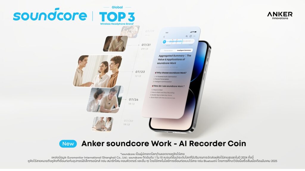 ปฏิวัติการจดบันทึกด้วย AI! soundcore เปิดตัว ‘Anker soundcore Work – AI Recorder Coin’ อย่างเป็นทางการในไทย