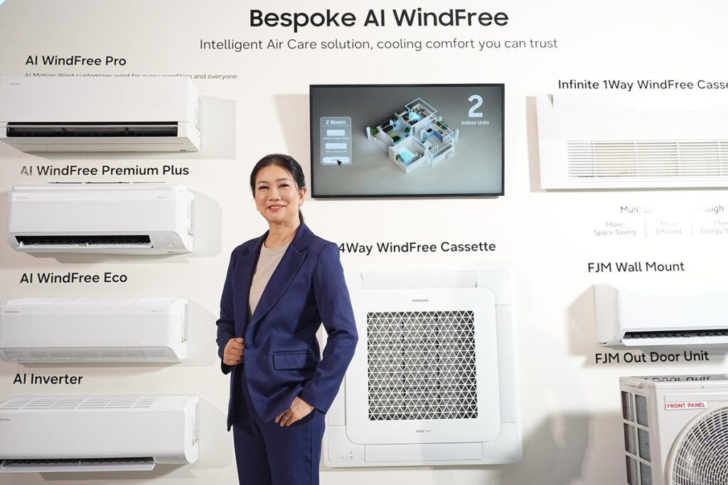 นางสาวอภิรดี พหลเวชช์ ผู้อำนวยการกลุ่มธุรกิจเครื่องปรับอากาศและกลุ่มลูกค้าองค์กรเครื่องใช้ไฟฟ้าภายในบ้าน กล่าวว่า ซัมซุงตอกย้ำความเป็นผู้นำด้านเครื่องปรับอากาศ ด้วยการผสานสมรรถนะการทำความเย็นที่ทรงพลัง ความทนทาน และการใช้งานที่ง่าย เข้ากับเทคโนโลยี AI ที่ช่วยบริหารการใช้พลังงานอย่างชาญฉลาด ลดค่าไฟ และเพิ่มประสิทธิภาพการทำงาน พร้อมการรับประกันและบริการหลังการขายที่สร้างความอุ่นใจ ตอบโจทย์การใช้งานจริงของผู้บริโภคไทยในระยะยาว