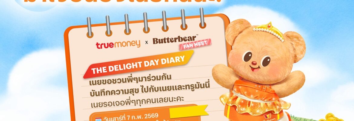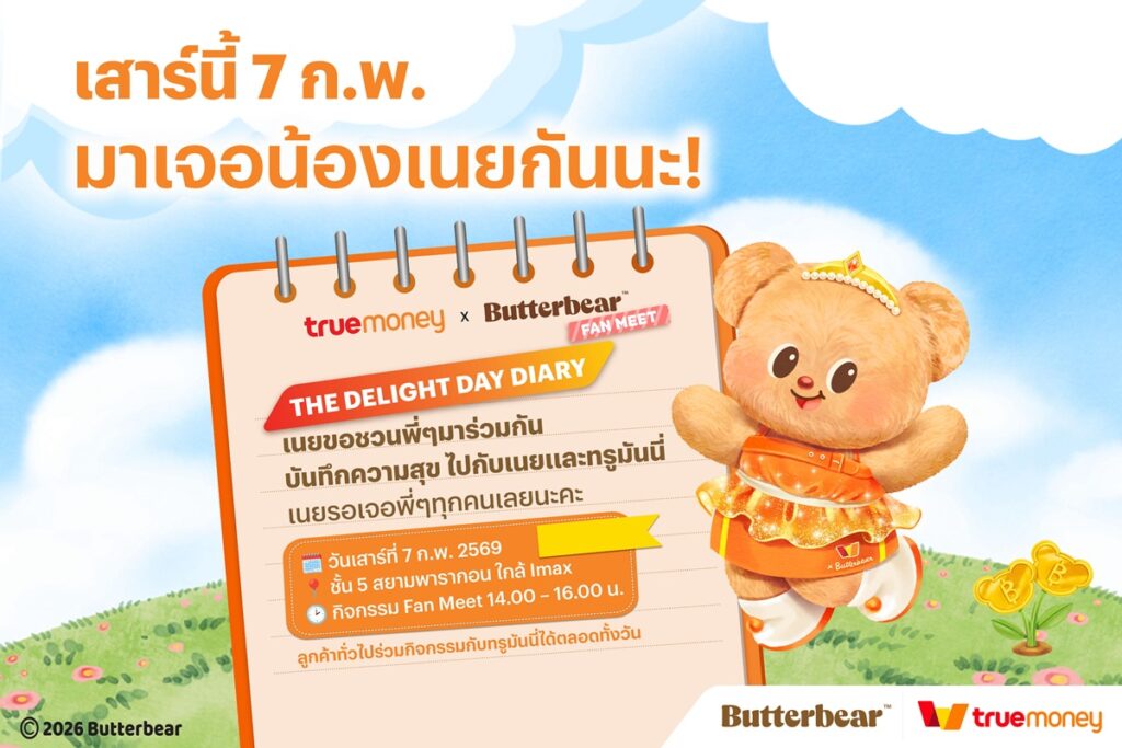 กรุงเทพฯ (5 กุมภาพันธ์ 2569) – ทรูมันนี่ ผู้นำด้านบริการอิเล็กทรอนิกส์เพย์เมนต์และผู้ให้บริการทางการเงินดิจิทัลชั้นนำในภูมิภาคเอเชียตะวันออกเฉียงใต้ ชวนเหล่ามัมหมีร่วมสัมผัสประสบการณ์สุดเอกซ์คลูซิฟในงาน “The Delight Day Diary” อีเวนต์พิเศษที่มาพร้อมความน่ารักสดใสของ “น้องเนย” (Butterbear) ไอดอลสาวสุดฮอตขวัญใจมหาชน ยกทัพกิจกรรมมากมายมาไว้ในงานเดียว ให้แฟน ๆ ได้ร่วมสร้างโมเมนต์สุดประทับใจแบบใกล้ชิด โดยงานจะจัดขึ้นในวันเสาร์ที่ 7 กุมภาพันธ์ 2569 ณ INFINICITY HALL ชั้น 5 ศูนย์การค้าสยามพารากอน และเปิดให้เข้าร่วมงานฟรี ไม่มีค่าใช้จ่าย